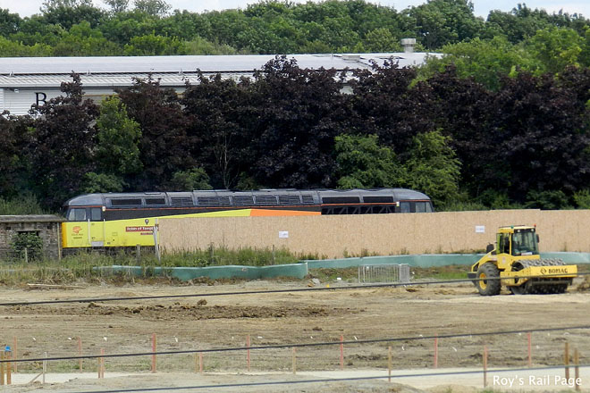 Built by British Rail at Doncaster, Class 56 No.56049 'Robin of Templecombe' hides behind the fence at Werrington on the 11th of July 2017.