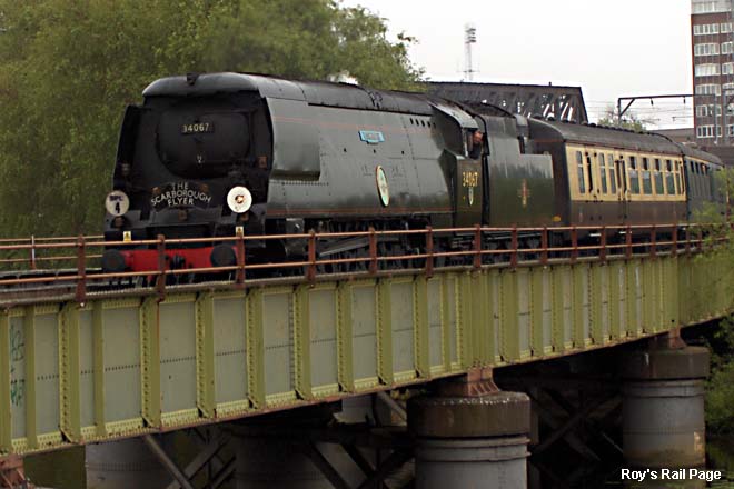 4-6-2 No. 34067 'Tangmere' crossing the river Nene at Peterborough on the 7th of May 2007 with a railtour from Norwich to Scarborough.