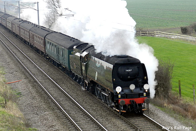 4-6-2 No. 34067 'Tangmere' at Marholm on the 13th of February 2016 on the Valentine White Rose railtour from Kings Cross to York.