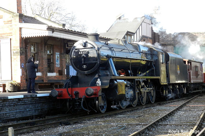 8F 2-8-0 No.48305 at Quorn with a demonstration freight train on the 26th of January 2024.