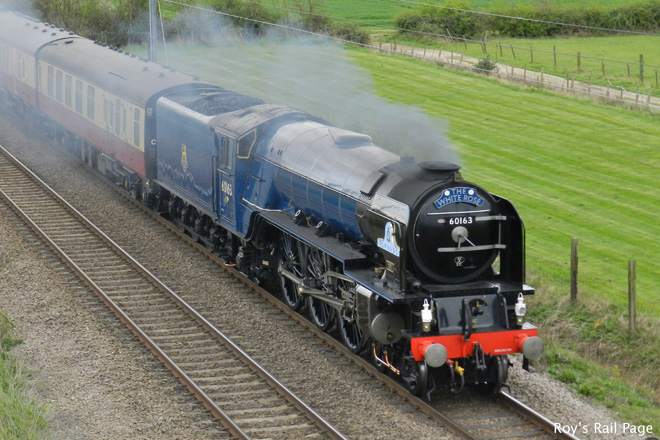 A1 4-6-2 No. 60163 now in B.R. blue livery on the 'White Rose' KX to York on the 12th of April 2014.