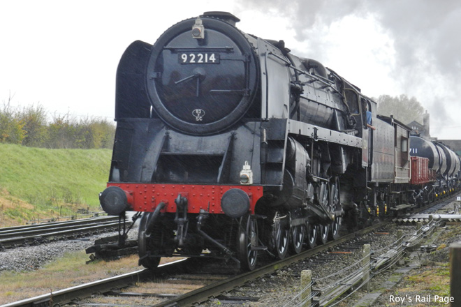 9F 2-10-0 no. 92214 in Black livery at Quorn on the 19th of November 2023.