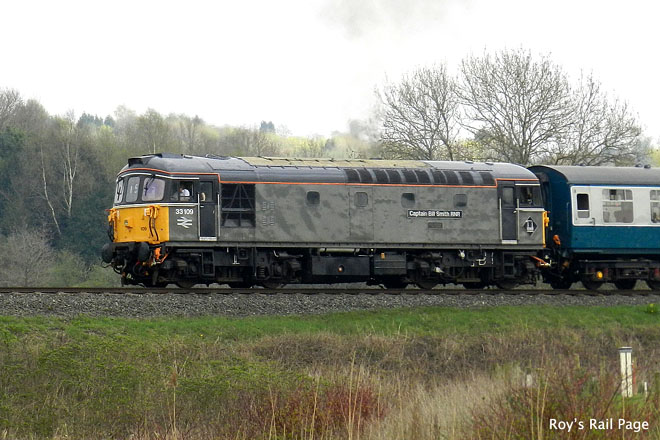 Preserved Bo-Bo B.R.C.& W.Co. Type 3 No. 33109 (D6525) at Bury, East Lancs. Railway on the 21st of April 2018