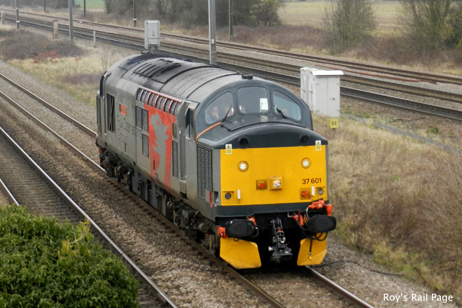 Class 37 No.37601in Euro Pheonix livery passes Marholm on the