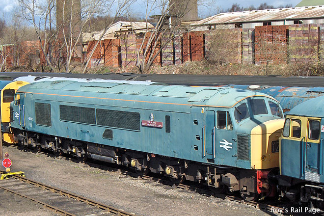 Preserved class 45 No.45112 'Royal Army Ordnance Corps' in B.R. Blue (original number - D61) at Barrow Hill on the 19th of March 2011