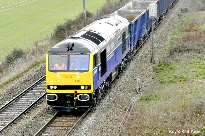 DCR/Cappagh liveried Class 60 No.60099 ''Ben More Assynt''passes Marholm on the 20th of Februaryr 2026 with 6L92 Chaddesden Sidings to Kings Lynn working.